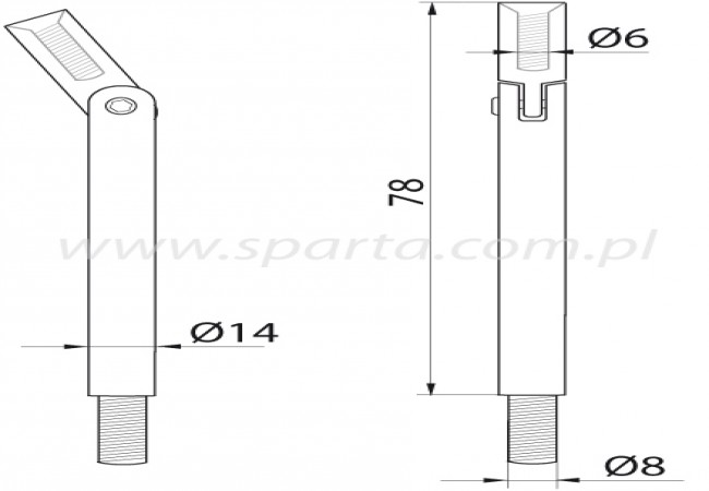 Trzpień z gwintem M8 przeznaczony do rury o średnicy 42,4 mm.
