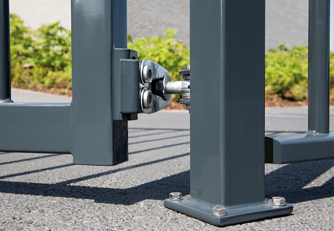 Ta zabezpieczona wersja zawiasu GBMU4D16 zapobiega odkręceniu śruby oczkowej i bolca skręcającego. Głębokość, wysokość i odległość między słupkiem a bramą są regulowane po instalacji. Również kierunek otwarcia można ustalić podczas montażu. Nie ma potrzeby produkowania skrzydeł lewych i prawych.