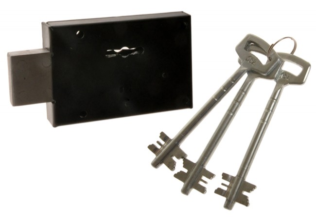Package: lock, 3 rim keys, outdoor sign.
