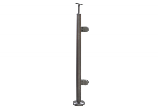 (37) Floor post with 2 brackets for glass balustrade, h=86cm, stainless steel AISI304, right