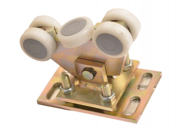 Wózek wahliwy 5 rolkowy, przeznaczony do konstrukcji bram samonośnych, o profilu 70x70x4mm. Rolki zostały wykonane z bardzo trwałego materiału jakim jest poliamid. Dodatkowo każda rolka posiada dodatkową pokrywkę, pod którą znajduje się smar zapewniający niezawodne działanie w najtrudniejszych warunkach atmosferycznych. Pokrywka zabezpiecza również przed dostaniem się piasku i innych niepożądanych zabrudzeń. Wszystkie rolki posiadają łożyska. Wózek posiada możliwość regulacji wysokości w zakresie 20mm (wysokość minimalna 90mm, maksymalna 115mm). Otwory na płytce nawiercane są jednocześnie, jednym przyrządem co zapewnia ich równomierne rozmieszczenie. Produkt polski.