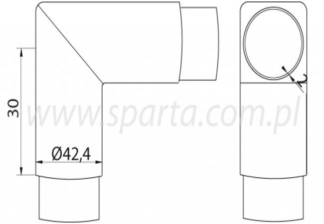 (9) 90 degree elbow glued onto a pipe D=42.4x2 mm, stainless steel AISI304 (straight angle)