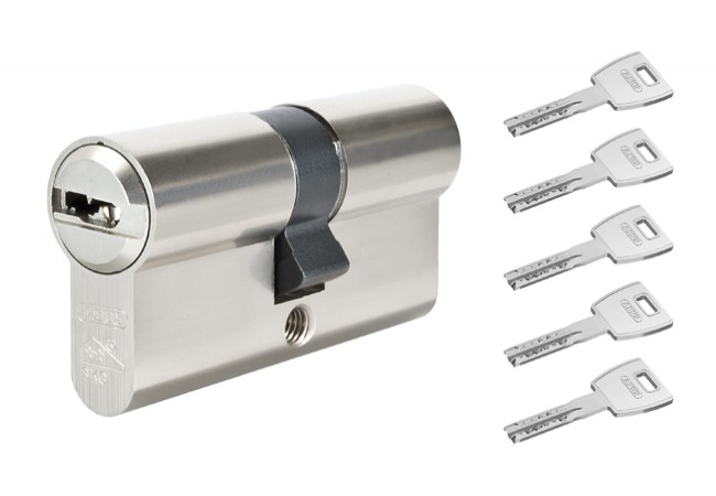 Description - ABUS X12 50/50 anti-theft cylinder (safety clutch) nickel, 5 dimple keys, class 6.D