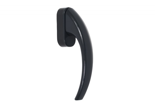 Klamka aluminiowa z odgiętą rękojeścią.W komplecie: klamka, trzpień.Kolor: atracyt.