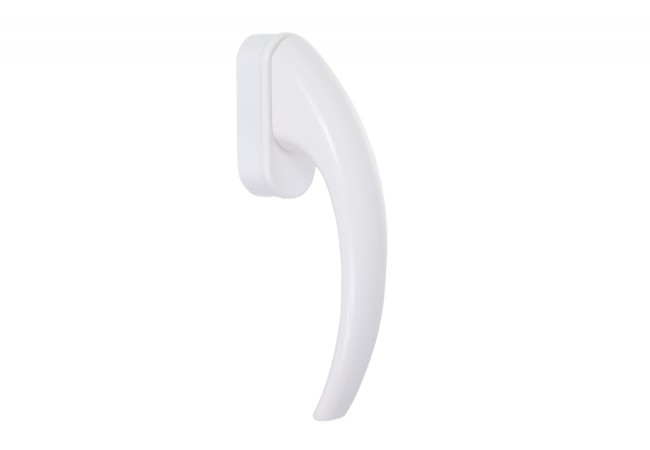 Klamka aluminiowa z odgiętą rękojeścią.W komplecie: klamka, trzpień.Kolor: biały.