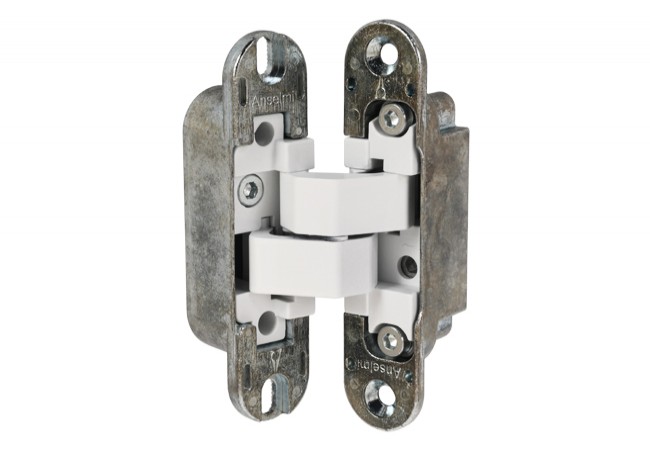 Zawias niewidoczny Anselmi dedykowany do skrzydeł drewnianych bezprzylgowych o minimalnej grubości 32 mm. Pozwala uzyskać bardzo ciekawy efekt jakim jest jednolita płaszczyzna drzwi i ościeżnicy. Praktyczną wartością dodaną jest możliwość regulacji w 3 płaszczyznach (tzw. regulacja 3D).