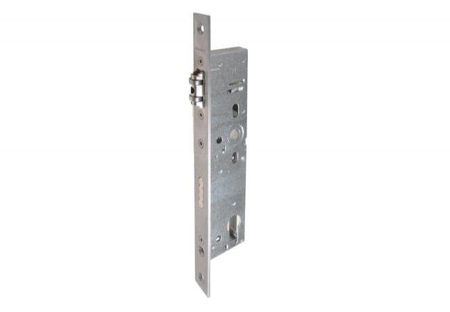 Zamek do drzwi wąskoprofilowych o dużym natężeniu ruchu. Drzwi do 300 kg.