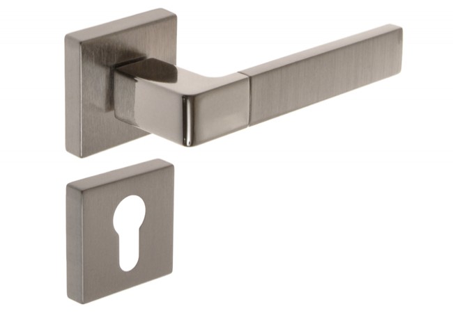 Description - ASTI 2 door handle with square plate WB satin nickel