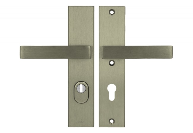 Description - Axa ROYAL ++ 72 WB handle class 3 with FLEX insert protection (fire protection), color F9 - titanium (door thickness 74-83 mm)