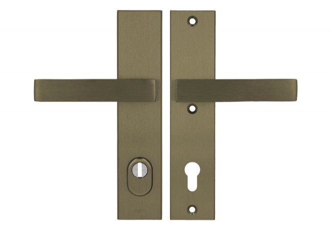 Description - Axa ROYAL ++ 92 WB handle class 3 with FLEX insert protection (fire protection), color F4 - old gold (door thickness 74-83 mm)