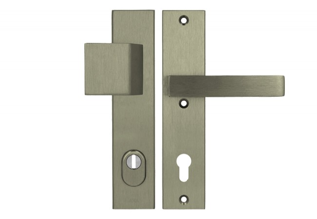 Description - Axa ROYAL ++ 92 WB handle-puller class 3 with FLEX insert protection (fire protection), color F9 - titanium (door thickness 74-83 mm)