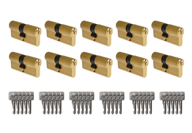 Description - B-Harko H6 cylinder system with a common key - 1 key (10 cylinders 30/30, 30 keys in total), brass