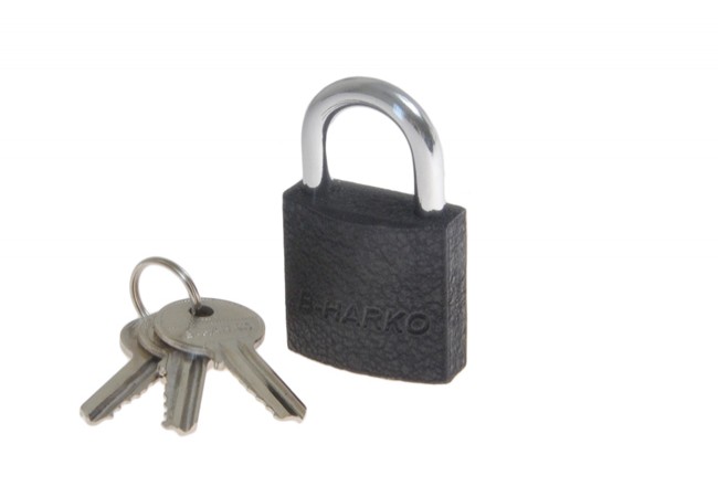 Made of cast iron padlock - latch B-Harko. - Brass cylinder, brass pins , - the key in S-Shape, - 3 keys included
