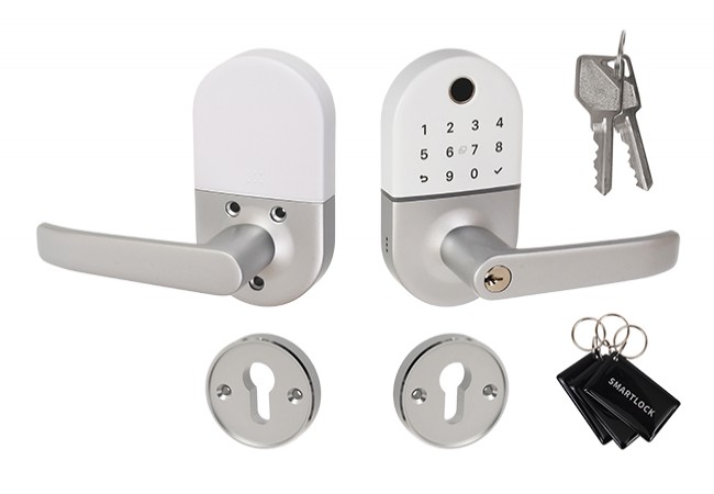BH-H13 electronic lock remotely managed (app + Bluetooth + biometric reader + card + PIN) 13.56 MHz, white/silver