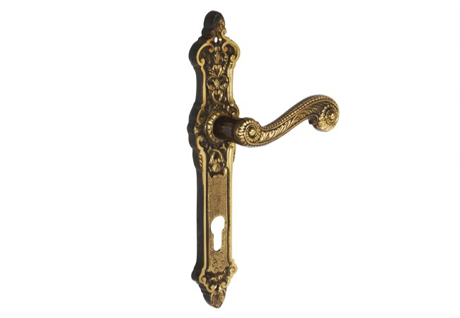 Klamka mosiężna ozdobna stanowić będzie elegancki element wykończeniowy bramy czy furtki. Szyld i uchwyt z ornamentami będzie prezentować się stylowo w każdej bramie kościelnej lub pałacowej. Klamka wykonana została w 100% z mosiądzu, przez co jest bardzo odporna na działanie zewnętrznych czynników drażniących. Klamka do bramy wyposażona jest w długi szyld i występuje w wersji z otworem na klucz lub wkładkę bębenkową. Żłobienia w stylu vintage na rękojeści zapewniają dobry chwyt nawet w niekorzystnych warunkach pogodowych. Do zastosowań zewnętrznych warto inwestować w produkty o podwyższonej trwałości i odporności na korozję, gdyż zapewniają pracę na lata. Wiele rodzajów zdobionych klamek bramowych w ofercie sprawi, że szybko odnajdą Państwo to czego potrzebują. Ponadczasowe wzory, które będą pasować do większości bram z drewna i metalu.