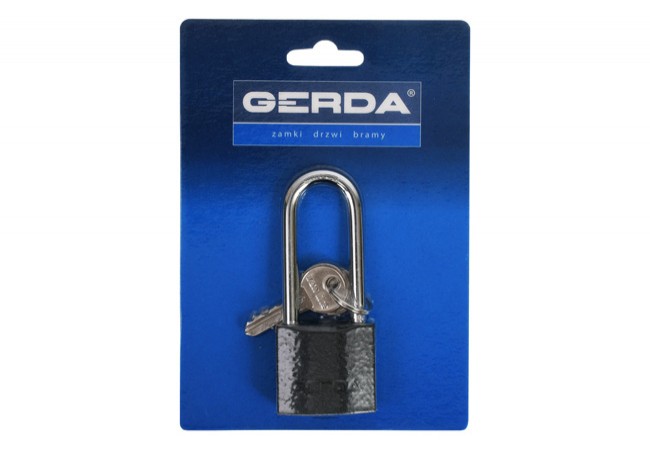 Description - Cast iron latch padlock with extended shackle GERDA IRON LINE KZZS S40H60 black, 3 keys, blister
