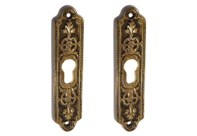 Ozdobny szyld drzwiowy który będzie stanowić znakomite dopełnienie skrzydeł wejściowych dworków i pałaców. Element występuje w kolorze złotym oraz patynie, dzięki czemu idealnie dopasujesz go do reszty okuć: klamek, zawiasów i akcesoriów wewnątrz pomieszczeń. Cechami, które zachęcają potencjalnych klientów są z pewnością atrakcyjny i elegancki wygląd, a także solidne wykonanie. Szyld ozdobny komponuje się perfekcyjnie z drewnianymi skrzydłami oraz tłoczonymi frontami Produkt powstał w 100% z mosiądzu, dzięki czemu cechuje się wysoką wytrzymałością mechaniczną. Rozeta wykazuje dużą odporność na czynniki atmosferyczne: wodę, promieniowanie, mróz. Posiada on otwór na wkładkę cylindryczną, która ma zapewnić pełnię ochrony naszej posiadłości. Ozdobny design dopasowany do klasycznych wnętrz, świetna jakość i bezkonkurencyjna cena.