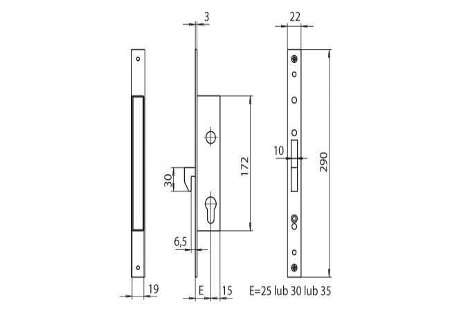 Lock mortise universal L / R for external and internal doors up to 200 kg in public utilities.