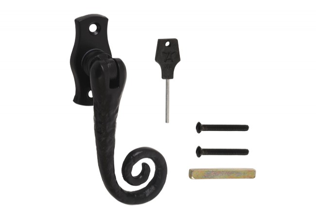 Czarne okucie okienne w kształcie zawiniętego ogona małpki znajdzie zastosowanie między innymi w karczmach, gospodach czy schroniskach górskich. Rustykalny design klamek wpasuje się doskonale w każde wnętrze w stylu wiejskim. Klamki typu Monkey Tail będą miały duży wpływ na odbiór oprawy okien, drzwi balkonowych czy tarasowych nadając określony klimat całemu pomieszczeniu. Klamka wyposażona jest w dodatkową blokadę otwarcia regulowaną kluczem imbusowym. Funkcja ta jest szczególnie przydatna gdy musimy opuścić lokal na dłużej, a chcemy mieć pewność, że klamki pozostaną na stałe zablokowane. Mocna, stalowa konstrukcja będzie mieć wpływ na dłuższą żywotność produktu. W komplecie z klamką znajdziemy: trzpień, dwie śruby pokryte czarną powłoką oraz kluczyk imbusowy. Produkt występuje w wersji prawej i lewej.