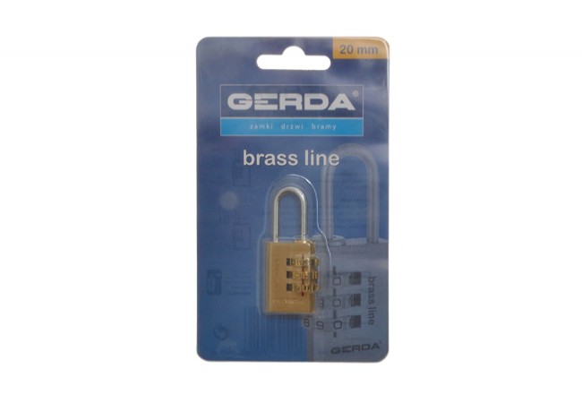 Description - Combination padlock 20mm GERDA BRASS LINE KMS S20 brass (3-digit code), blister