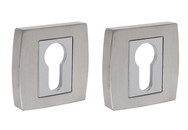Szyld drzwiowy, kwadratowy z zaoblonymi krawędziami w kolorze chromu. Solidne wykonanie, funkcjonalność i bezpieczeństwo.