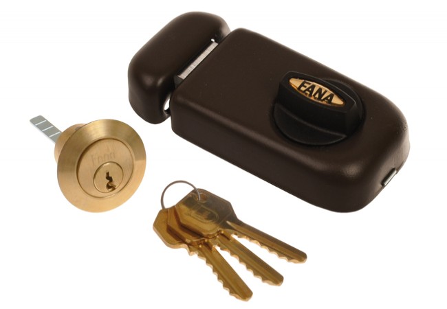 DECAYEUX ZSW rim lock, brown lacquer, with low box striker, 3 keys (102-2)
