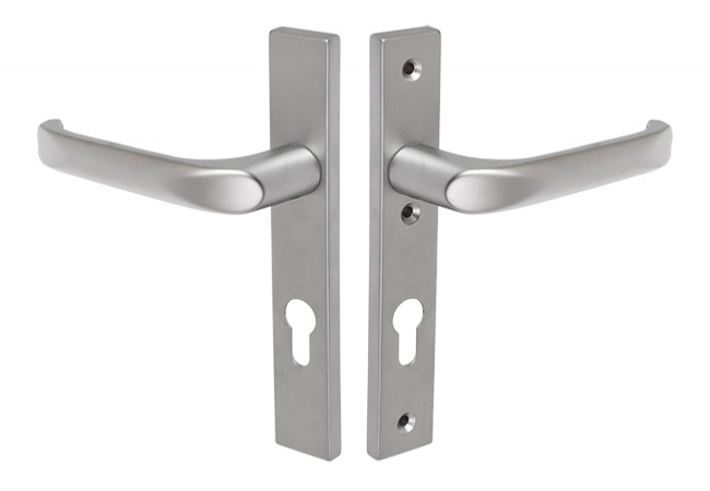 Klamka drzwiowa wykonana ze znalu - stopu cynku i aluminium, stosowana w drzwiach aluminiowych, PVC i wszędzie tam, gdzie z przyczyn kontrukcyjnych wymagany jest wąski szyld klamki (32 mm). Przeznaczona do drzwi o grubości maksymalnej 80 mm.