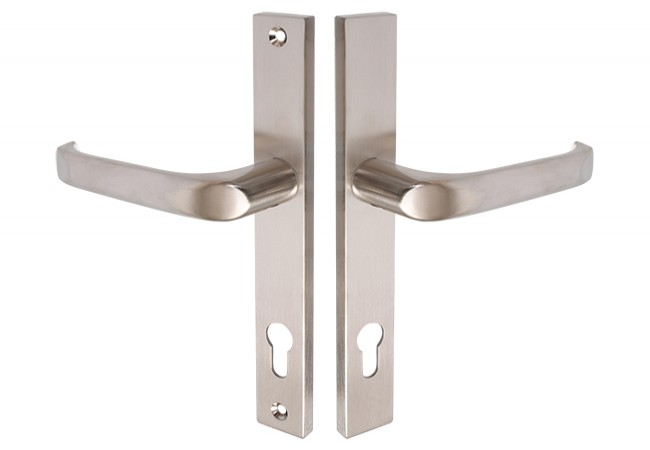Klamka drzwiowa wykonana ze znalu - stopu cynku i aluminium, stosowana w drzwiach aluminiowych, PVC i wszędzie tam, gdzie z przyczyn kontrukcyjnych wymagany jest wąski szyld klamki (32 mm). Przeznaczona do drzwi o grubości maksymalnej 80 mm.