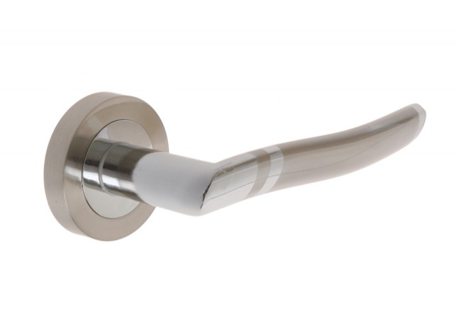 Description - Door handle with round escutcheon B-Harko CORNUS, satin nickel/chrome