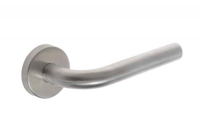 Description - Door handle with round escutcheon B-HARKO KI 05, 8mm spindle, 38mm screw spacing, stainless steel (set)