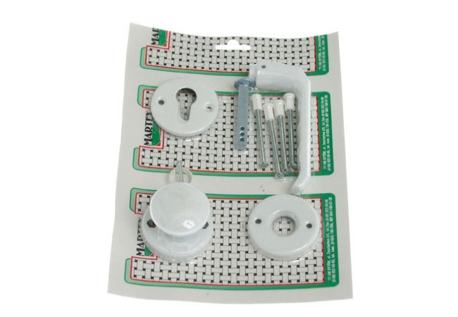 Gałka i klamka, trzpień i elementy montażowe. Pakowane na blistrze