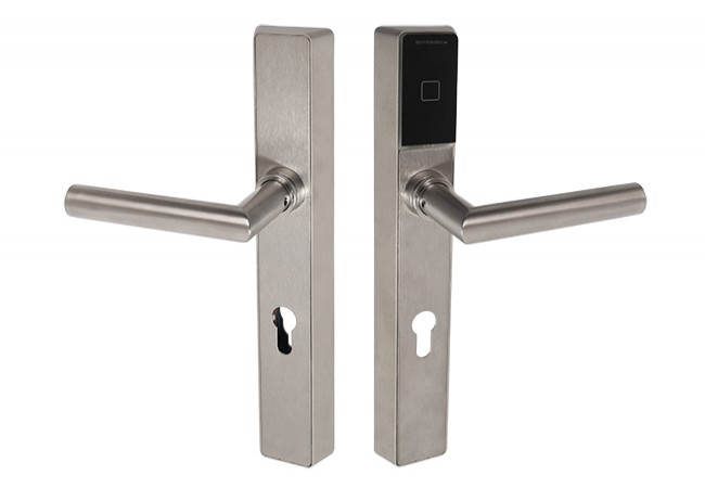 Description - Dormakab C-Lever K6 pro electronic door handle, 90 WB (wide plate, 8 mm spindle, for doors 63-100 mm thick)