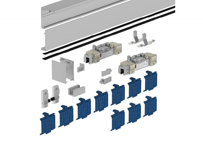 Description - Dormakab MUTO Comfort L80 kit (2180 mm profile) for sliding glass doors (8-13.5 mm glass), load capacity 80 kg, ceiling mounting