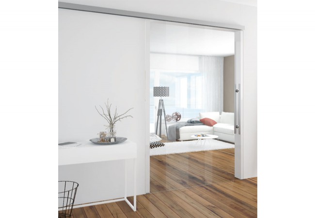 Description - Dormakab MUTO Comfort L80 kit (2180 mm profile) for sliding glass doors (8-13.5 mm glass), load capacity 80 kg, wall mounting