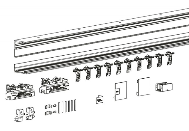 Description - Dormakab MUTO Comfort M60 kit (2400 mm profile) for sliding glass doors (8-12 mm glass), load capacity 60 kg, ceiling mounting