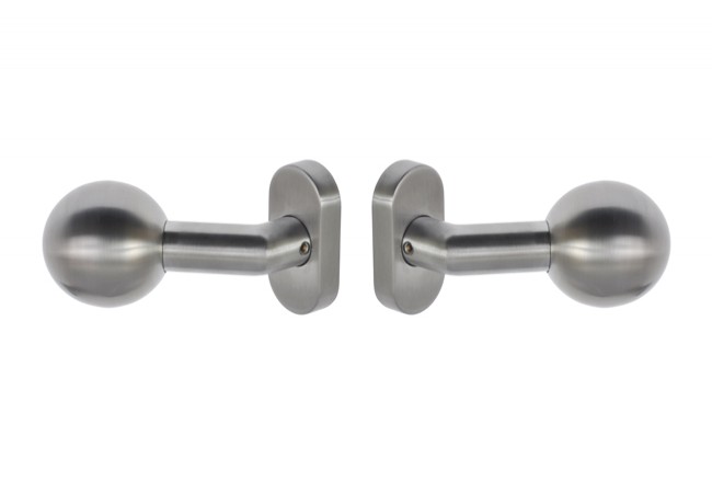 Gałko-gałka na szyldzie owalnym, obrotowa. Wykonana ze stali nierdzewnej.
