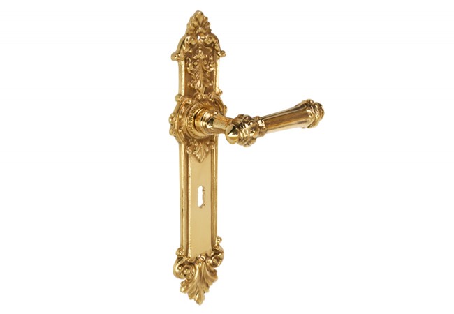 Eagle-18 brass cast door handle, 72 mm key-locking, brass