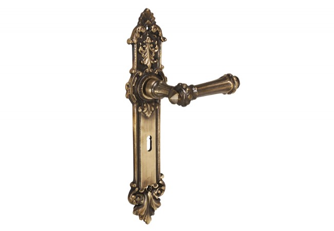 Eagle-18 brass cast door handle, 72 mm key spacing, patina