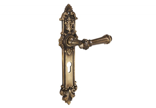 Eagle-18 brass cast door handle, 72 mm spacing per insert, patina