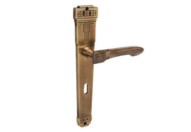 Eagle-19 brass cast door handle, 72 mm key spacing, patina with spring