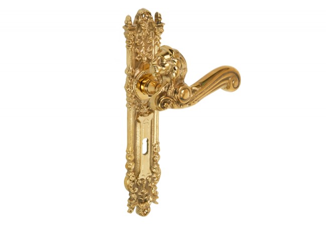 Description - Eagle-22 brass cast door handle, 72 mm key-locking, brass with spring