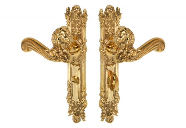 Description - Eagle-22 brass cast door handle, 72mm spacing, brass with spring