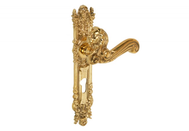 Eagle-22 brass cast door handle, 90° spacing per insert, brass with spring