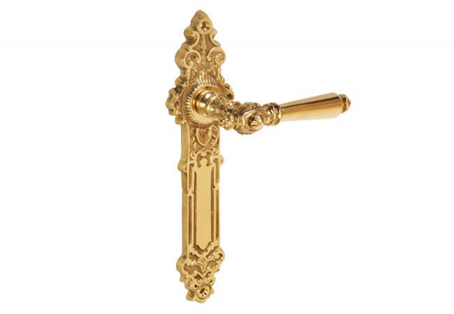 Description - Eagle-37 brass cast door handle, no puncture, brass with spring