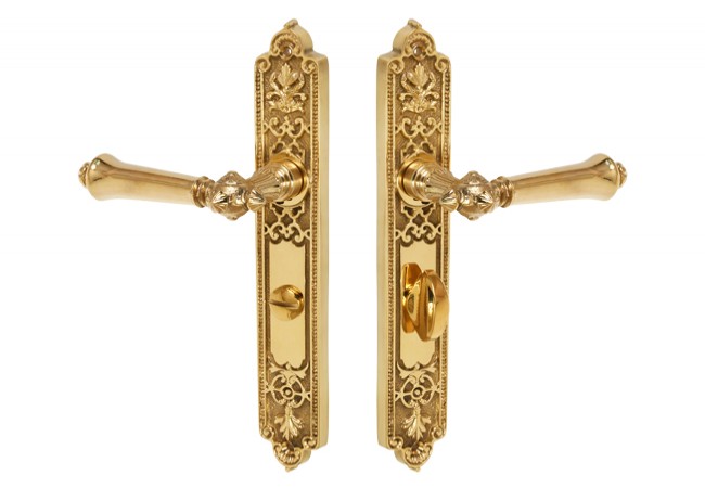 Eagle-52 brass cast door handle, 90° WC spacing, brass with spring
