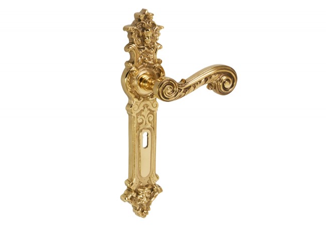 Eagle-6 brass cast door handle, 90° key spacing, brass with spring