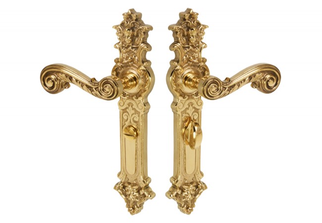 Eagle-6 brass cast door handle, 90° WC spacing, brass with spring