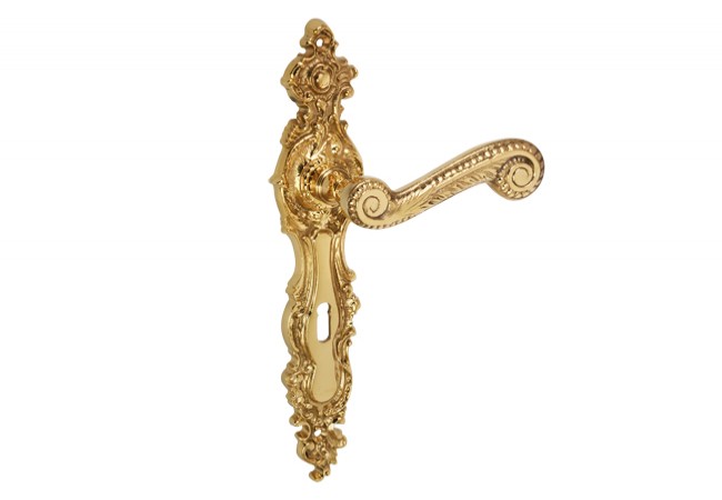 Description - Eagle-8 brass cast door handle, 72 mm key-locking, brass with spring