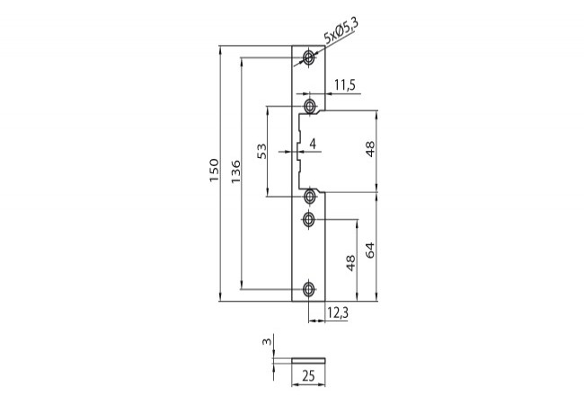Krótki, prosty szyld do elektrozaczepu.Szczegółowe wymiary w pliku PDF.