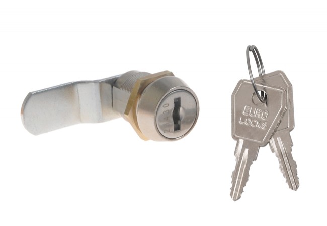 Zamki meblowe Euro-Locks zapewniają uniwersalność i szybkość w montażu. Model ten sprawdzi się w różnego rodzaju meblach - zastosowania medycznego, biurowego, szafkach pracowniczych. Wykonany z świetnych tworzyw, które są odporne na mechaniczne uszkodzenia - niklowanej powłoki i mosiężnej nakrętki chroniącej przed korozją. Krzywka w zamku pozwala na zmianę stronności. Ustawienie rygla można dostosować obracając go nawet o 180 stopni, gdzie pojedynczy skok wynosi 90 stopni względem zamka. Chroń cenne dokumenty, pieniądze i inne kosztowności dobrej jakości zamkiem krzywkowym Euro-Locks B671. W komplecie z zamkiem - 2 klucze indywidualne.
